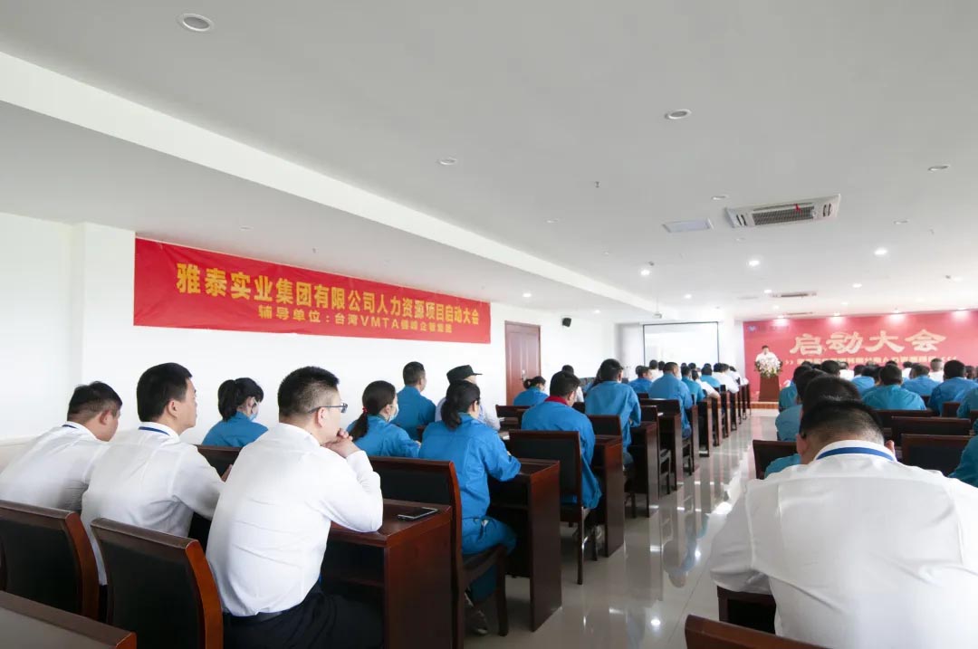 為提升企業(yè)整體管理水平,創(chuàng)造更為優(yōu)質(zhì)的人才環(huán)境,5月21日上午,集團(tuán)特邀臺灣VMTA健峰企管集團(tuán)導(dǎo)入人力資源輔導(dǎo)項(xiàng)目,在江蘇雅泰召開雅泰實(shí)業(yè)集團(tuán)人力資源輔導(dǎo)項(xiàng)目啟動大會。