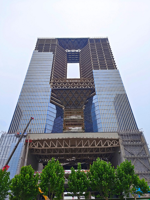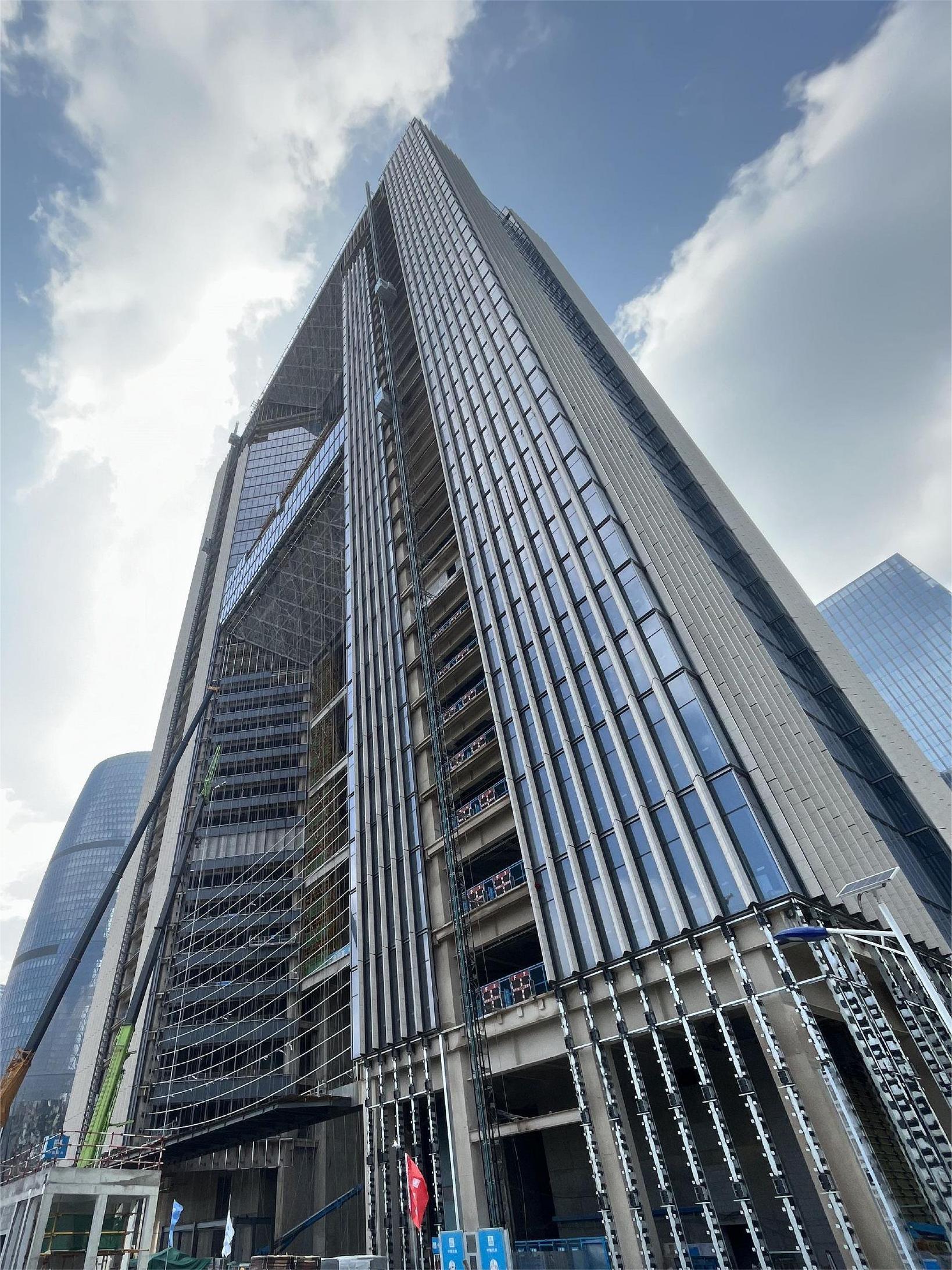 該工程由中國建筑第八工程局有限公司承建,雅泰實(shí)業(yè)集團(tuán)承接外墻裝飾部分材料供材約40000平方米。項(xiàng)目體量大、工期短,目前工程全面進(jìn)入外墻裝飾階段,集團(tuán)全力保障該項(xiàng)目的供材,預(yù)計10月完成外幕墻全部封閉。封閉后可以完整地看到大廈上部呈現(xiàn)為一個雄偉的大門,彰顯國家對信息建設(shè)的信心和決心,“信息之門”由此而來。