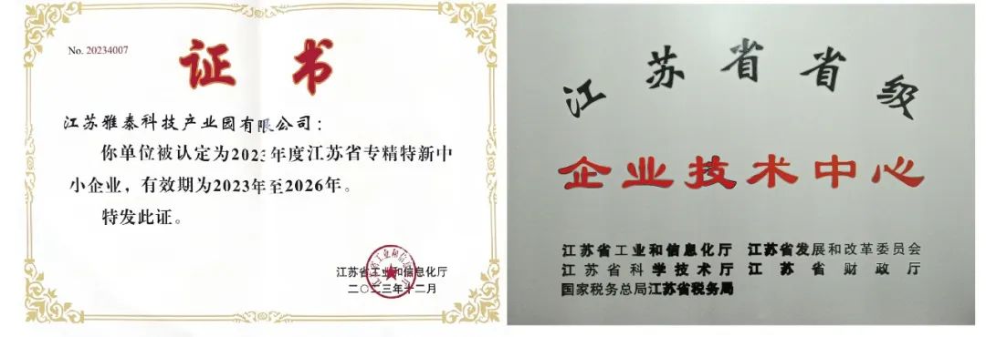 江蘇雅泰喜獲“江蘇省專精特新”、“江蘇省企業(yè)技術(shù)中心”兩項省級資質(zhì)榮譽(yù),標(biāo)志著江蘇雅泰科學(xué)管理體系、技術(shù)研發(fā)能力邁上了更高的臺階!