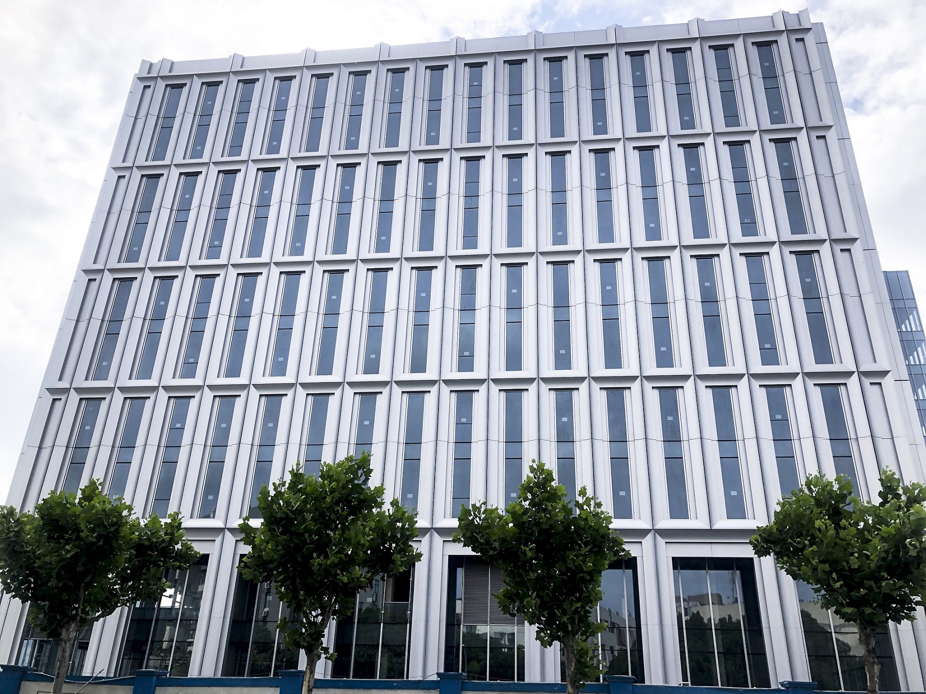 該項(xiàng)目是單元體幕墻結(jié)構(gòu),現(xiàn)場(chǎng)骨架與鋁板融為一體,鋁板組裝嚴(yán)絲合縫,單個(gè)單元體使用連接片160余個(gè),其中60個(gè)需要機(jī)加工,以滿足三邊連接型材,個(gè)體螺絲使用量約1200顆。整體組裝后尺寸達(dá)到3000*5100mm。