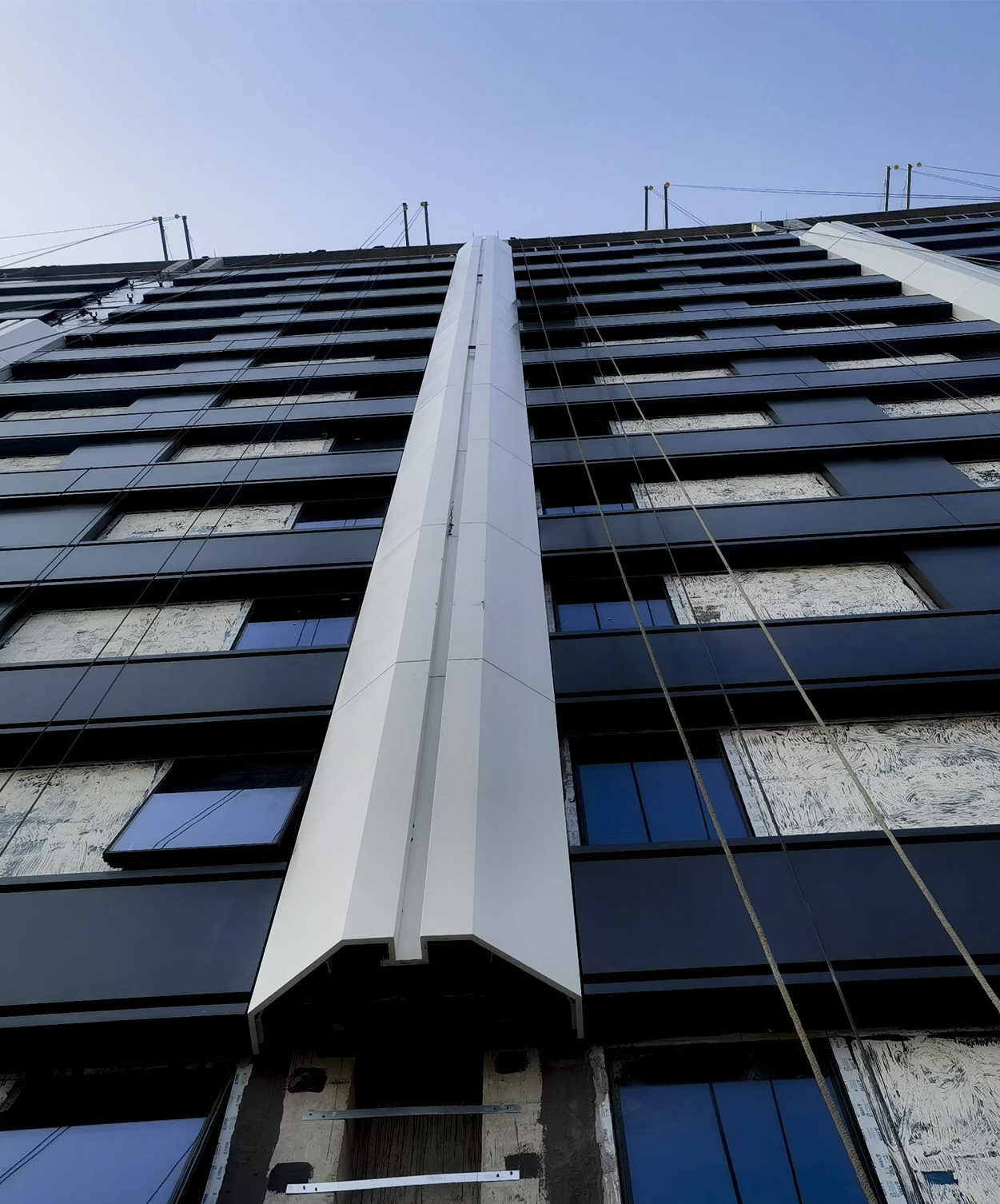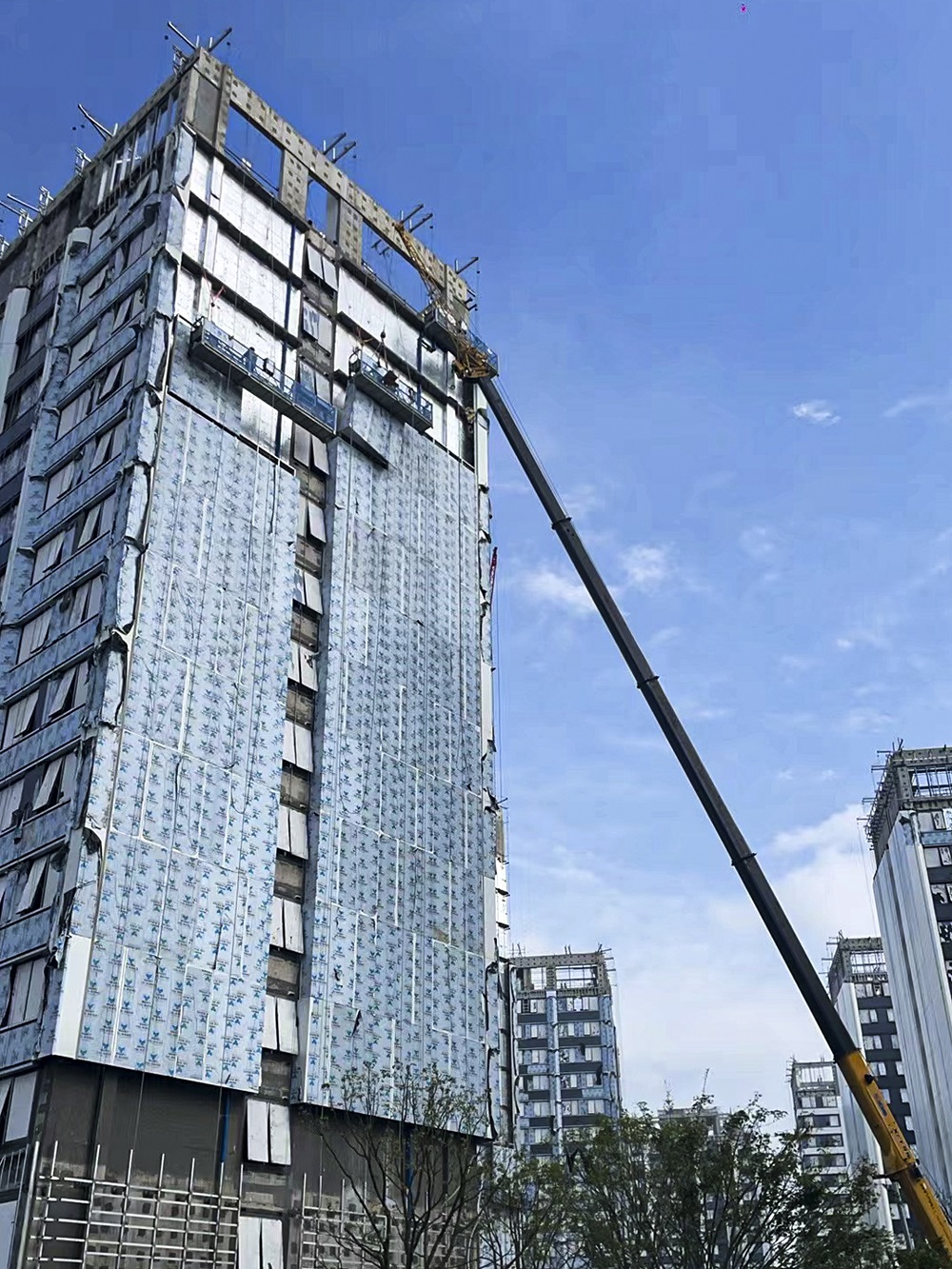 為保障幾萬名研發(fā)人員的生活配套,緊鄰華為研發(fā)中心的上海西岑單身公寓項(xiàng)目目前也基本完成。項(xiàng)目包含35棟單體建筑和1棟短租式公寓,公寓進(jìn)度非常迅速,外墻采用了高效集成的裝配式單元金屬幕墻系統(tǒng)。裝配式幕墻污染少、節(jié)能環(huán)保,可減少90%以上的建筑垃圾 。同時(shí)由于裝配式幕墻二次結(jié)構(gòu)已施工前置,所以相對傳統(tǒng)結(jié)構(gòu)安裝,工期會提前10%-15%。