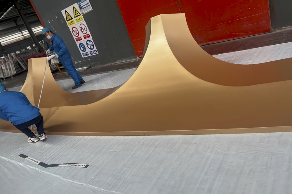 在華為練秋湖研發(fā)中心,為了研發(fā)人員有一個(gè)非常輕松愜意的工作與科創(chuàng)環(huán)境,每一個(gè)組團(tuán)、每一棟單體都因各自功能性不同而被賦予不同的造型,所以幕墻的樣式也比較豐富。同時(shí)每一棟單體特色都以大板、大弧度的形式進(jìn)行單獨(dú)或拼接展現(xiàn),對于加工技術(shù)以及加工廠要求都比較高。為配合設(shè)計(jì)要求,雅泰集團(tuán)積極開展項(xiàng)目專攻、技術(shù)探討、工藝培訓(xùn),大大提升了鋁幕墻板件的成型度和美觀性。