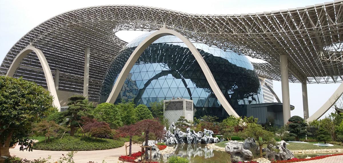 杭州國(guó)際博覽中心位于杭州市蕭山區(qū)錢江世紀(jì)城,是二十國(guó)集團(tuán)領(lǐng)導(dǎo)人第十一次峰會(huì)的主場(chǎng)館,其作為浙江省重點(diǎn)項(xiàng)目規(guī)劃建筑面積84萬(wàn)平方米,設(shè)有展覽中心、會(huì)議中心、綜合物業(yè)、屋頂花園(城市客廳)、地下商業(yè)及車庫(kù)等五大功能區(qū)。展覽中心設(shè)計(jì)國(guó)際標(biāo)準(zhǔn)展位7500個(gè)(其中1000個(gè)為室外展位);會(huì)議中心能滿足舉辦APEC、達(dá)沃斯等高規(guī)格的國(guó)際會(huì)議;規(guī)模6萬(wàn)平方的屋頂花園結(jié)合城市客廳既能滿足高規(guī)格接見(jiàn)、高標(biāo)準(zhǔn)宴會(huì)、高檔次精品展的需要,城市客廳與錢塘江對(duì)岸的“城市陽(yáng)臺(tái)”遙相呼應(yīng),形成一個(gè)新的城市亮點(diǎn)。