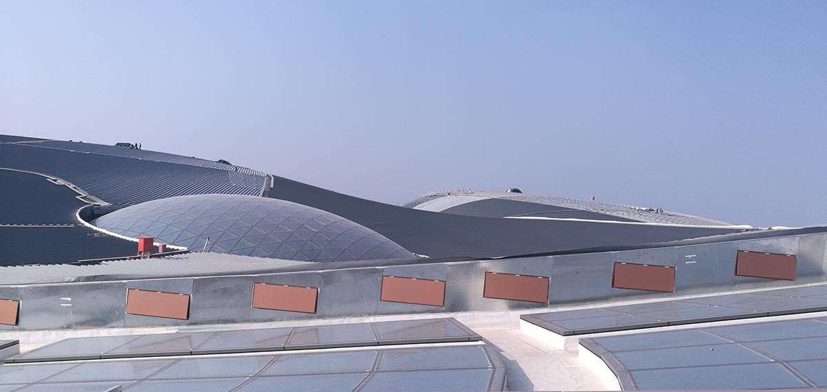 5)屋頂面積:18萬(wàn)平方米,8根C形柱作支撐,相當(dāng)于25個(gè)標(biāo)準(zhǔn)足球場(chǎng);